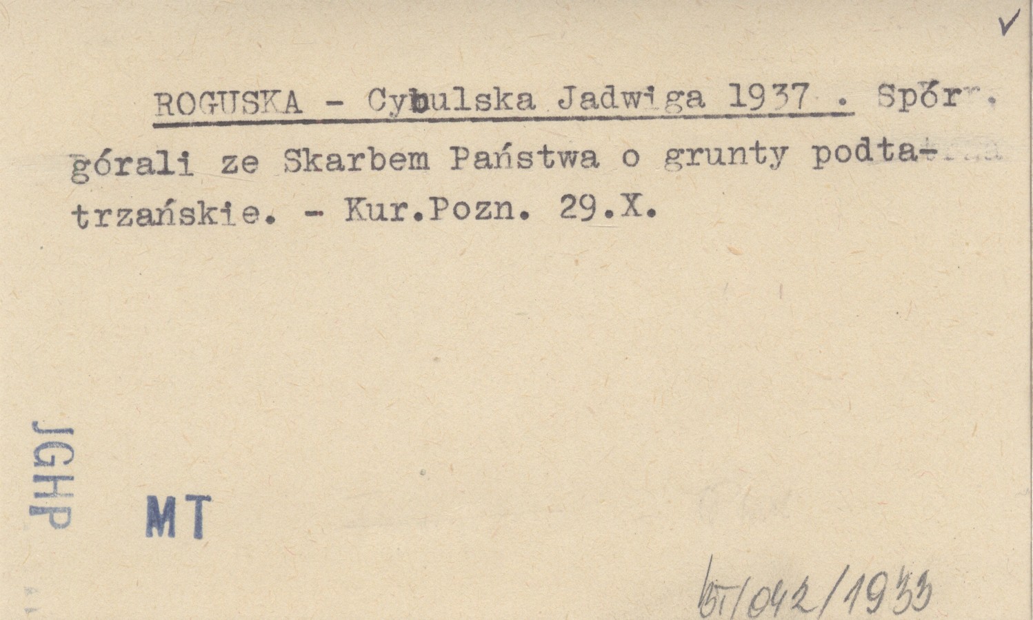ROGUSKA-CYBULSKA Jadwiga 1937 Spór górali ze Skarbem Państwa o grunty podtatrzańskie.