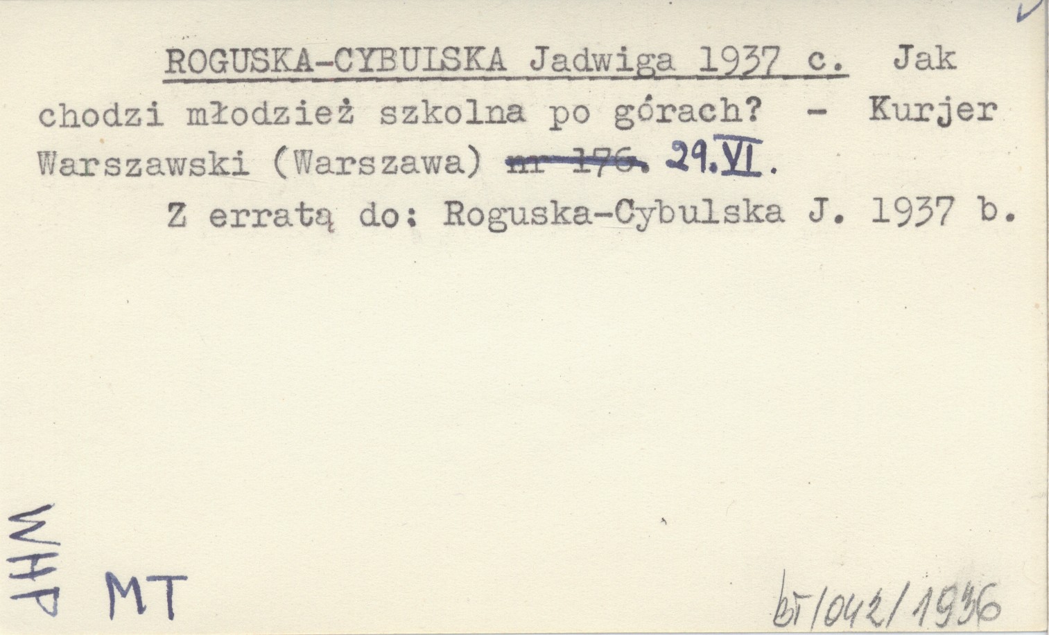 Kurjer Warszawski (Warszawa) , 29 VI. Z erratą do: Roguska-Cybulska J. 1937 b.