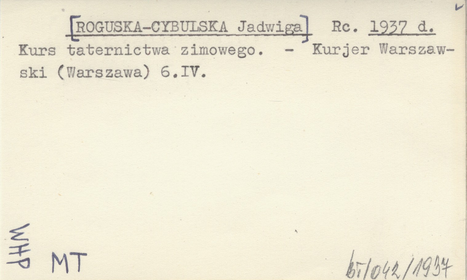 Rc. [ROGUSKA-CYBULSKA Jadwiga] 1937 d Kurs taternictwa zimowego.