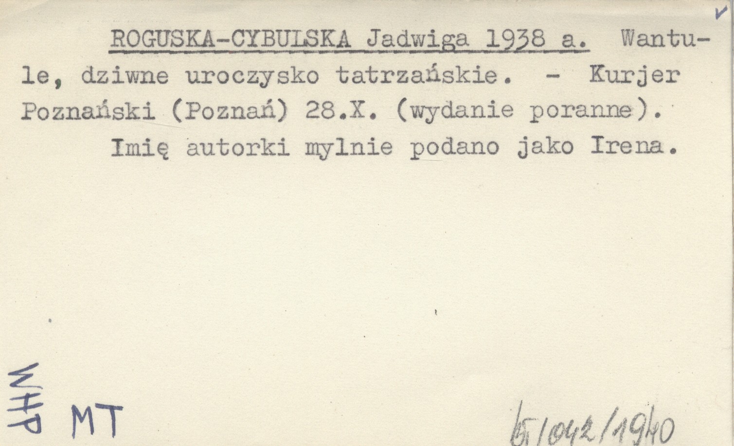 ROGUSKA-CYBULSKA Jadwiga 1938 a Wantule, dziwne uroczysko tatrzańskie.