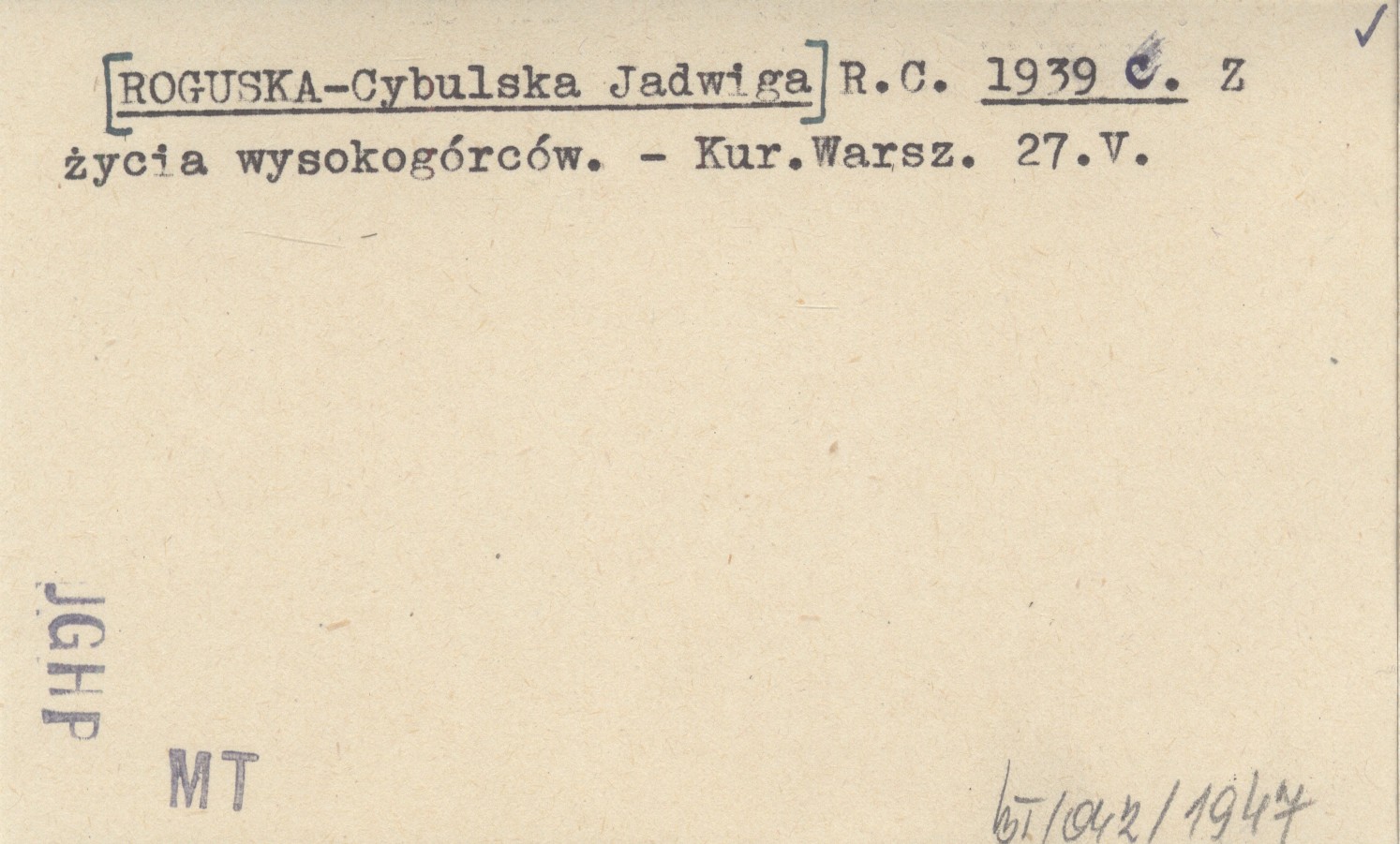 R. C. [ROGUSKA-CYBULSKA Jadwiga] 1939 c Z życia wysokogórców.