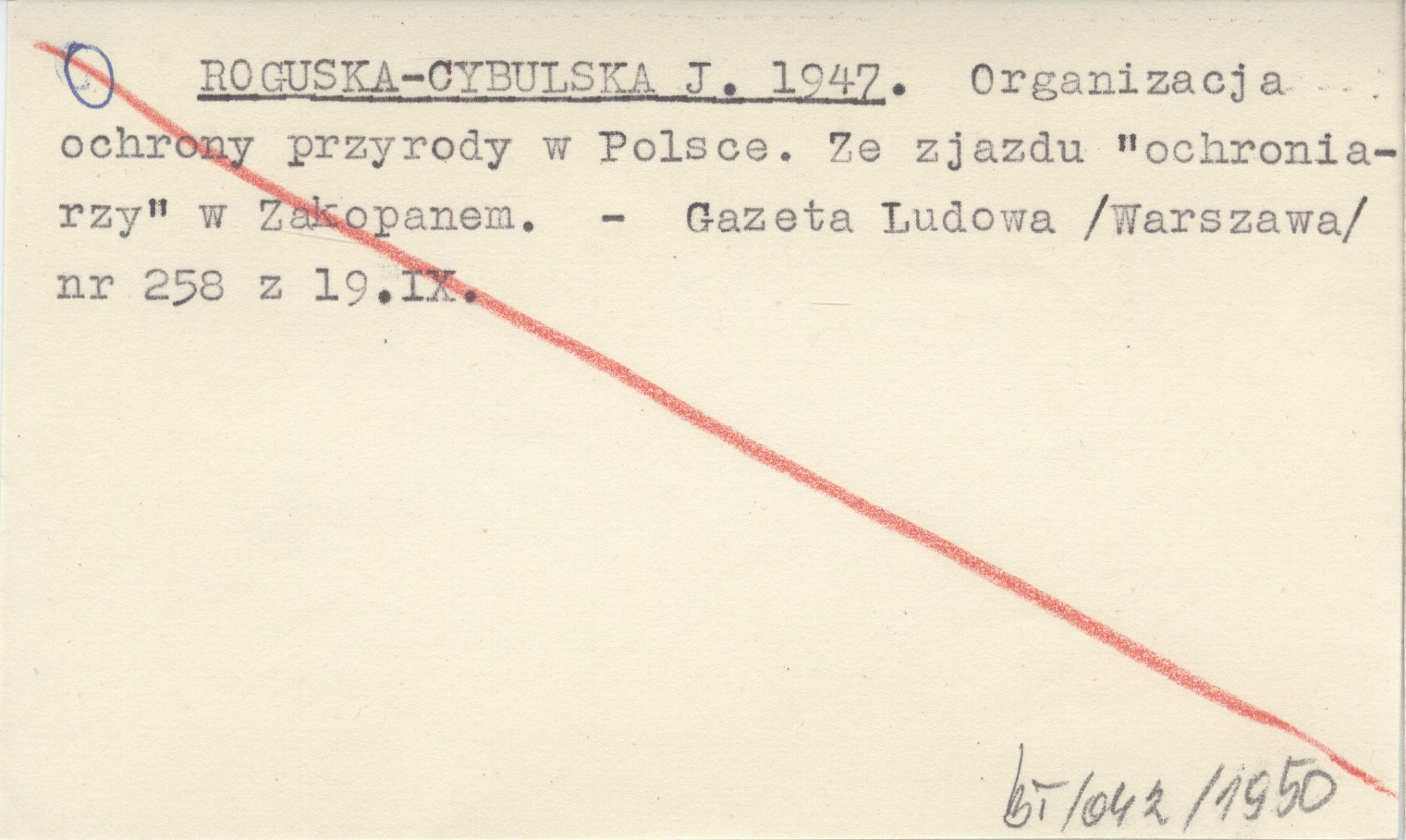 ROGUSKA-CYBULSKA J. 1947 Organizacja ochrony przyrody w Polsce. Ze zjazdu "ochroniarzy" w Zakopanem.