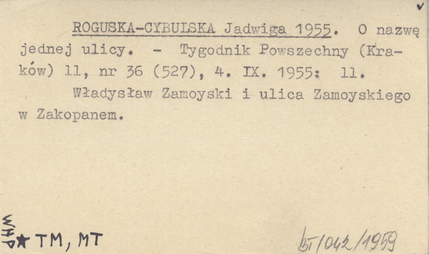 ROGUSKA-CYBULSKA Jadwiga 1955 O nazwę jednej ulicy.