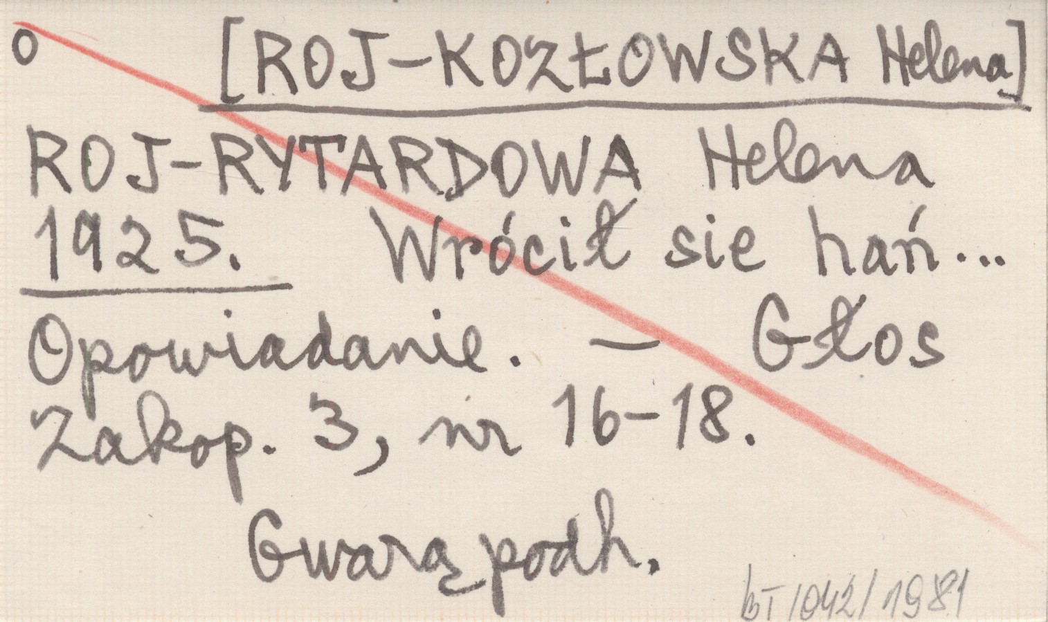 ROJ-RYTARDOWA Helena [ROJ-KOZŁOWSKA Helena] 1925 Wrócił się hań... Opowiadanie.