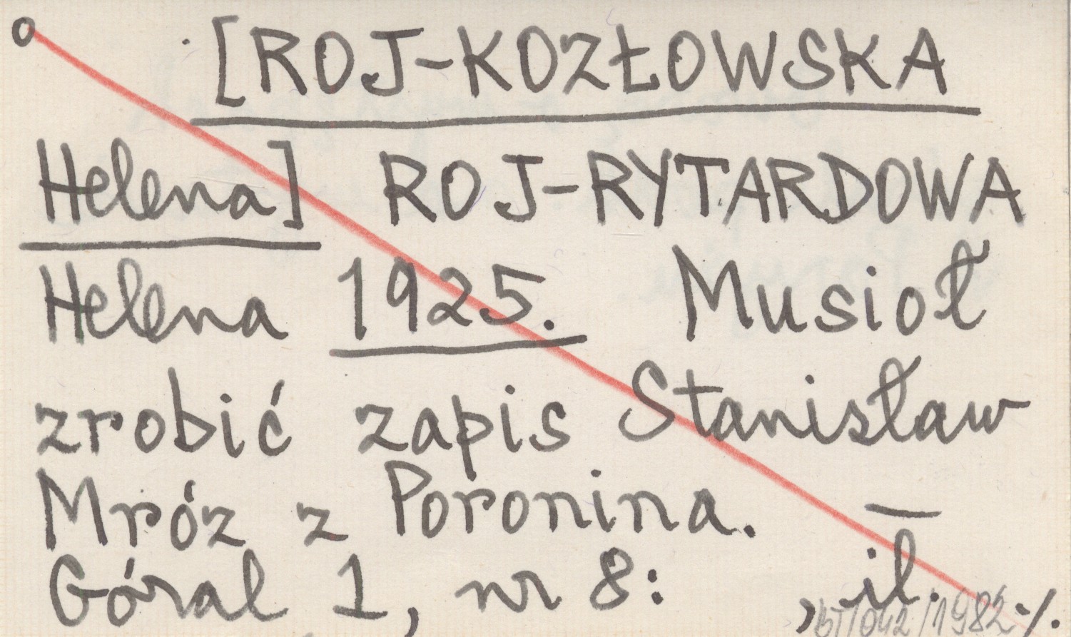 ROJ-RYTARDOWA Helena [ROJ-KOZŁOWSKA Helena] 1925 Musioł zrobić zapis Stanisław Mróz z Poronina.