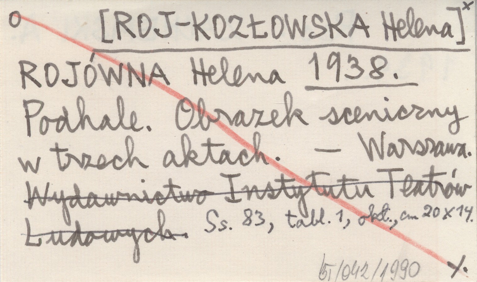 ROJÓWNA Helena [ROJ-KOZŁOWSKA Helena] 1938 Podhale. Obrazek sceniczny w trzech aktach.