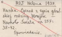 ROJ Helena 1937 Hanka. Epizod z życia góralskiej rodziny Wrajów.