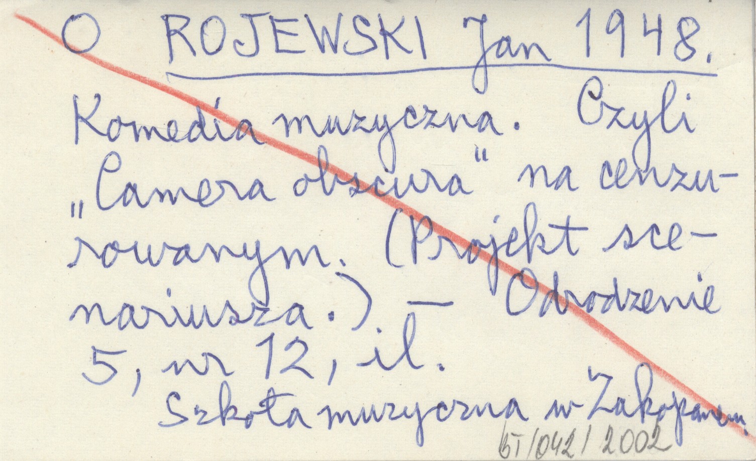 ROJEWSKI Jan 1948 Komedia muzyczna. Czyli "Camera obscura" na cenzurowanym. (Projekt scenariusza).
