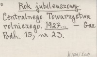 Rok jubileuszowy Centralnego Towarzystwa rolniczego. 1927...