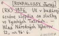 (RK) [ROKFALUSSY Juraj] 1956 Už v budúcej sezóne zlepšia sa služby vo Vysokých Tatrách.