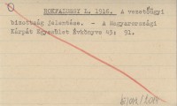 ROKFALUSSY L. 1916 A vezetőügyi bizottság jelentése.