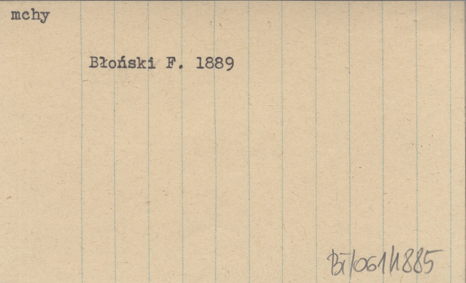 BŁOŃSKI Franciszek 1889 Materyjały do flory skrytokwiatowej krajowej. Conspectus muscorum Poloniae. Mchy Królestwa Polskiego. Część I. Mchy bocznozarodniowe. Bryinae pleurocarpae.