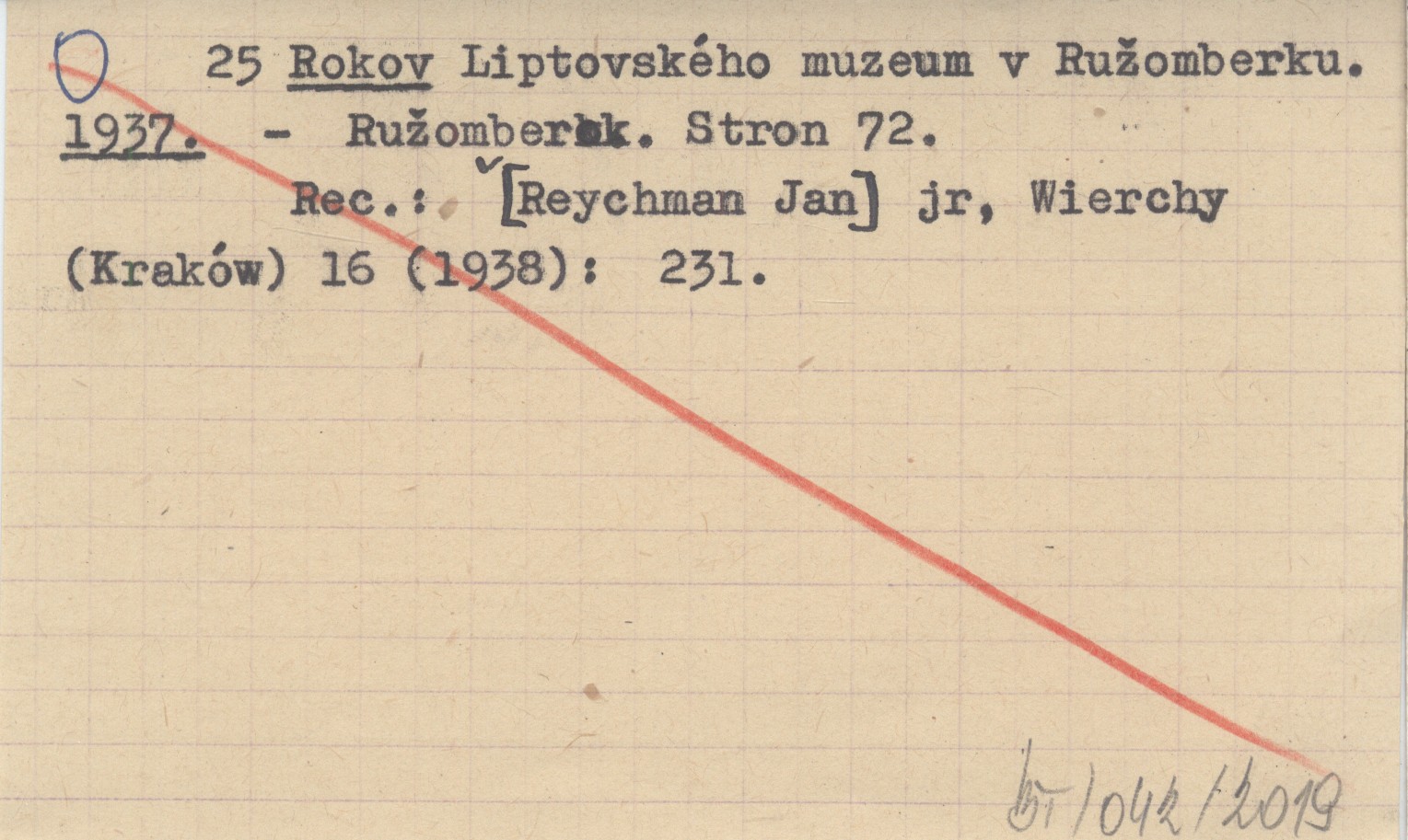 REC: [REYCHMAN Jan] jr, Wierchy (Kraków) 16 (1938): 231.