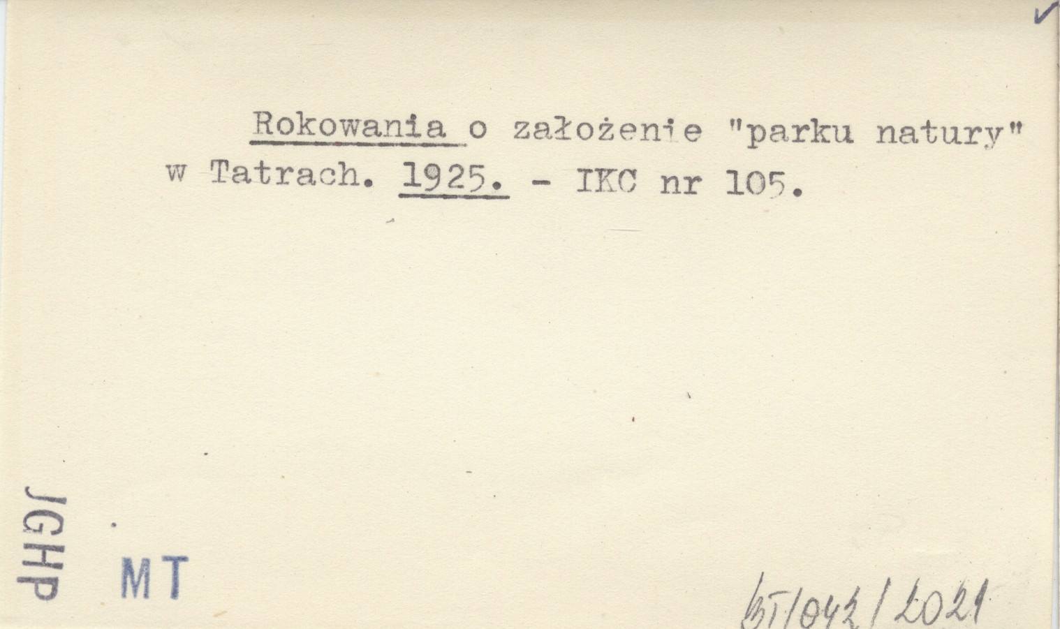Rokowania o założenie "parku natury" w Tatrach. 1925