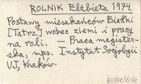 ROLNIK Elżbieta 1974 Postawy mieszkańców Białki [Tatrz.] wobec ziemi i pracy na roli.