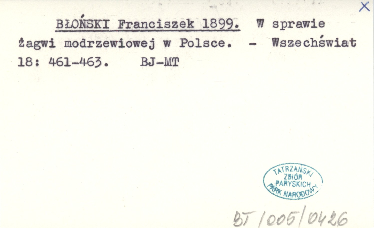 BŁOŃSKI Franciszek 1899 W sprawie żagwi modrzewiowej w Polsce.