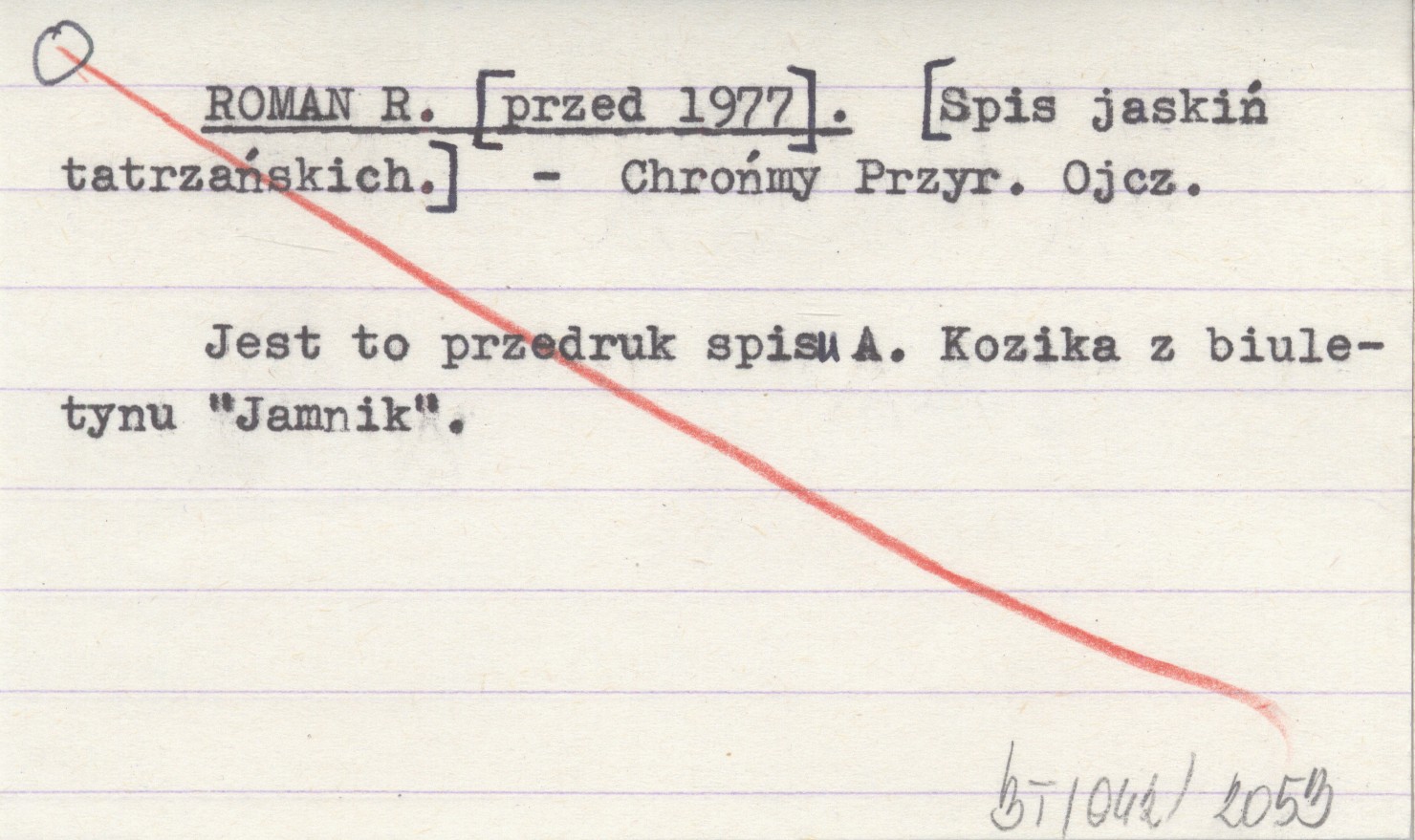 Chrońmy Przyrodę Ojczystą, Jest to przedruk spisu A. Kozika z biuletynu "Jamnik".