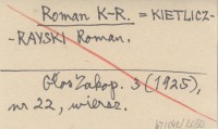 Roman K-R. KIETLICZ-RAYSKI Roman Głos Zakopiański 3 (1925), nr 22. wiersz.