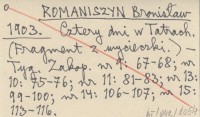 ROMANISZYN Bronisław 1903 Cztery dni w Tatrach. (Fragment z wycieczki).