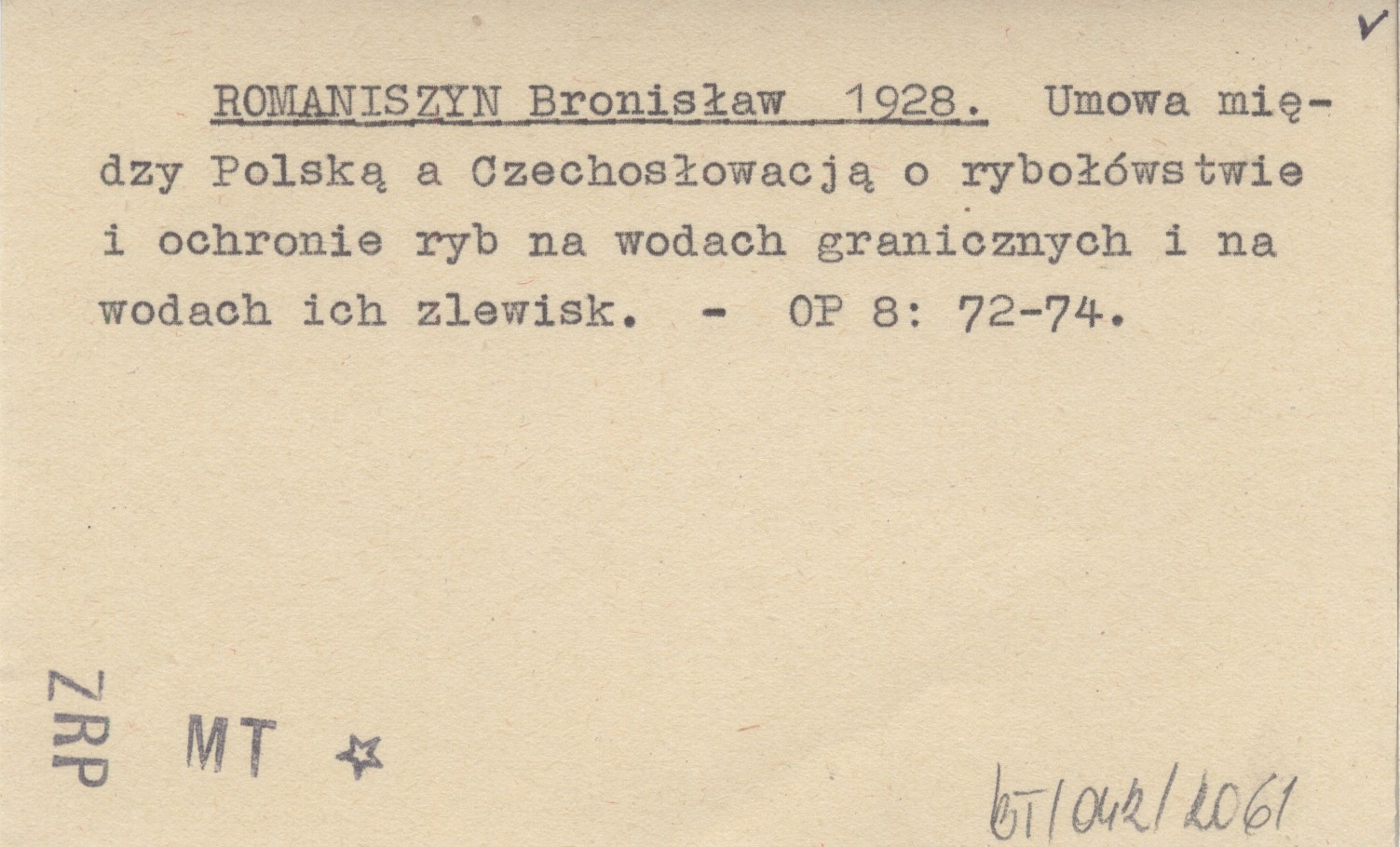 ROMANISZYN Bronisław 1928 Umowa między Polską a Czechosłowacją o rybołówstwie i ochronie ryb na wodach granicznych i na wodach ich zlewisk.