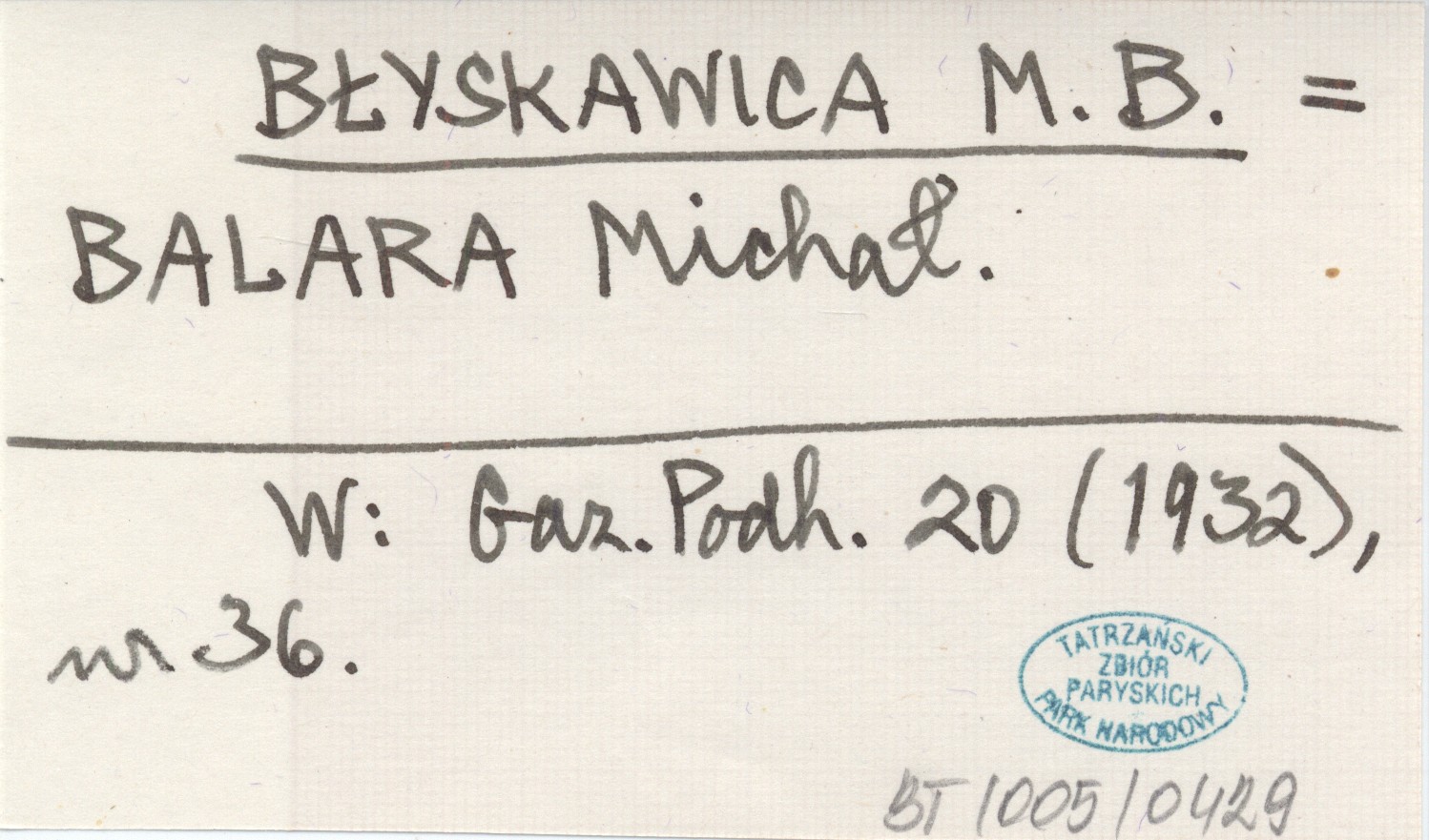 BŁYSKAWICA M. B. BALARA Michał Gazeta Podhalańska 20 (1932), nr 36.