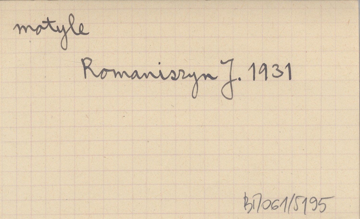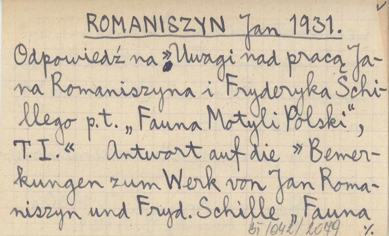 ROMANISZYN Jan 1931 Odpowiedź na »Uwagi nad pracą Jana Romaniszyna i Fryderyka Schillego p.t. "Fauna Motyli Polski", T.I.« Antwort auf die »Bemerkungen zum Werk von Jan Romaniszyn und Fryd. Schille "Fauna Lepidopterorum Poloniae", T.I.«.