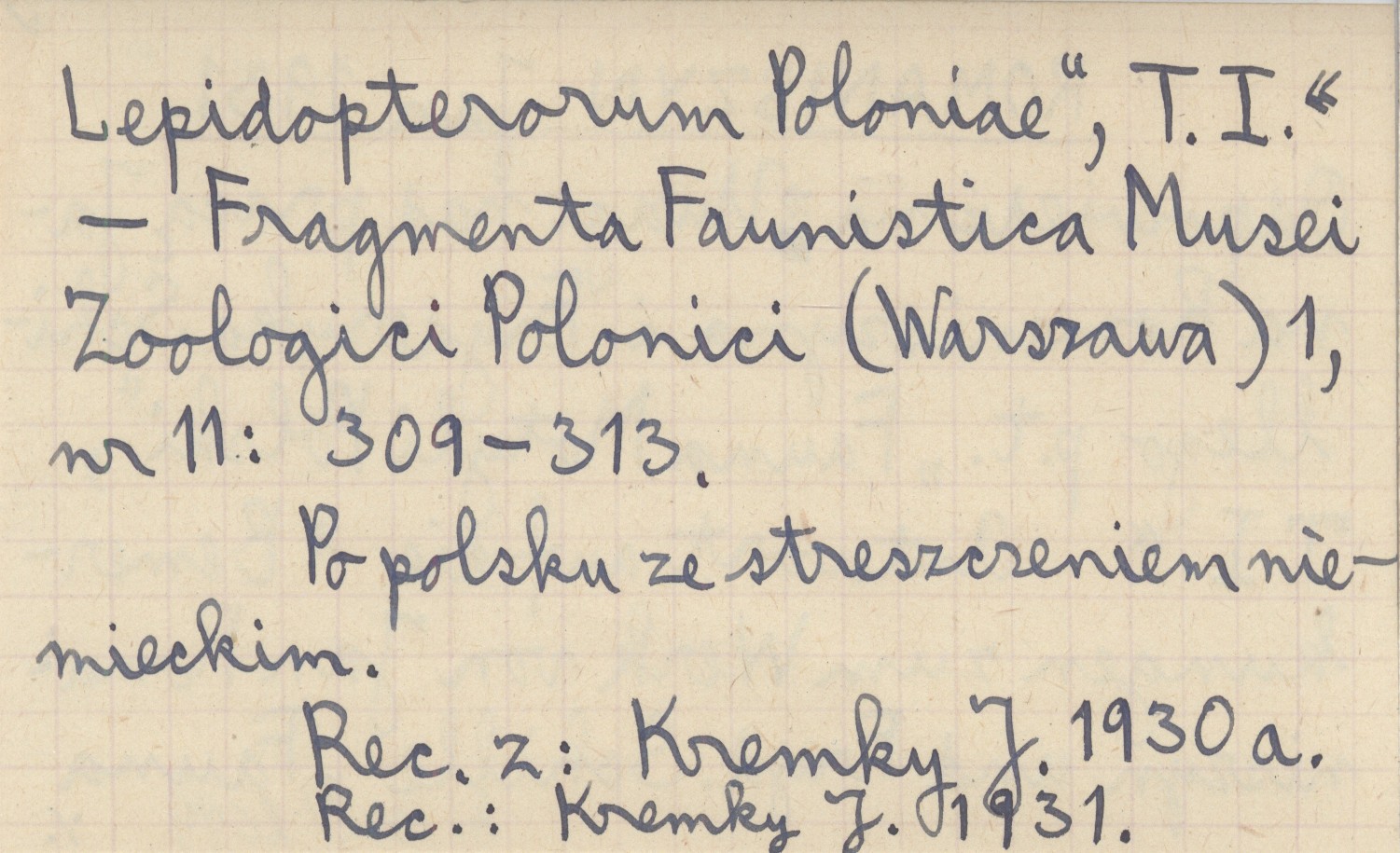Fragmenta Faunistica Musei Zoologici Polonici (Warszawa) , 1, nr 11: 309-313. Po polsku ze streszczeniem niemieckim. Rec. z: KREMKY J. 1930 a REC: KREMKY J. 1931