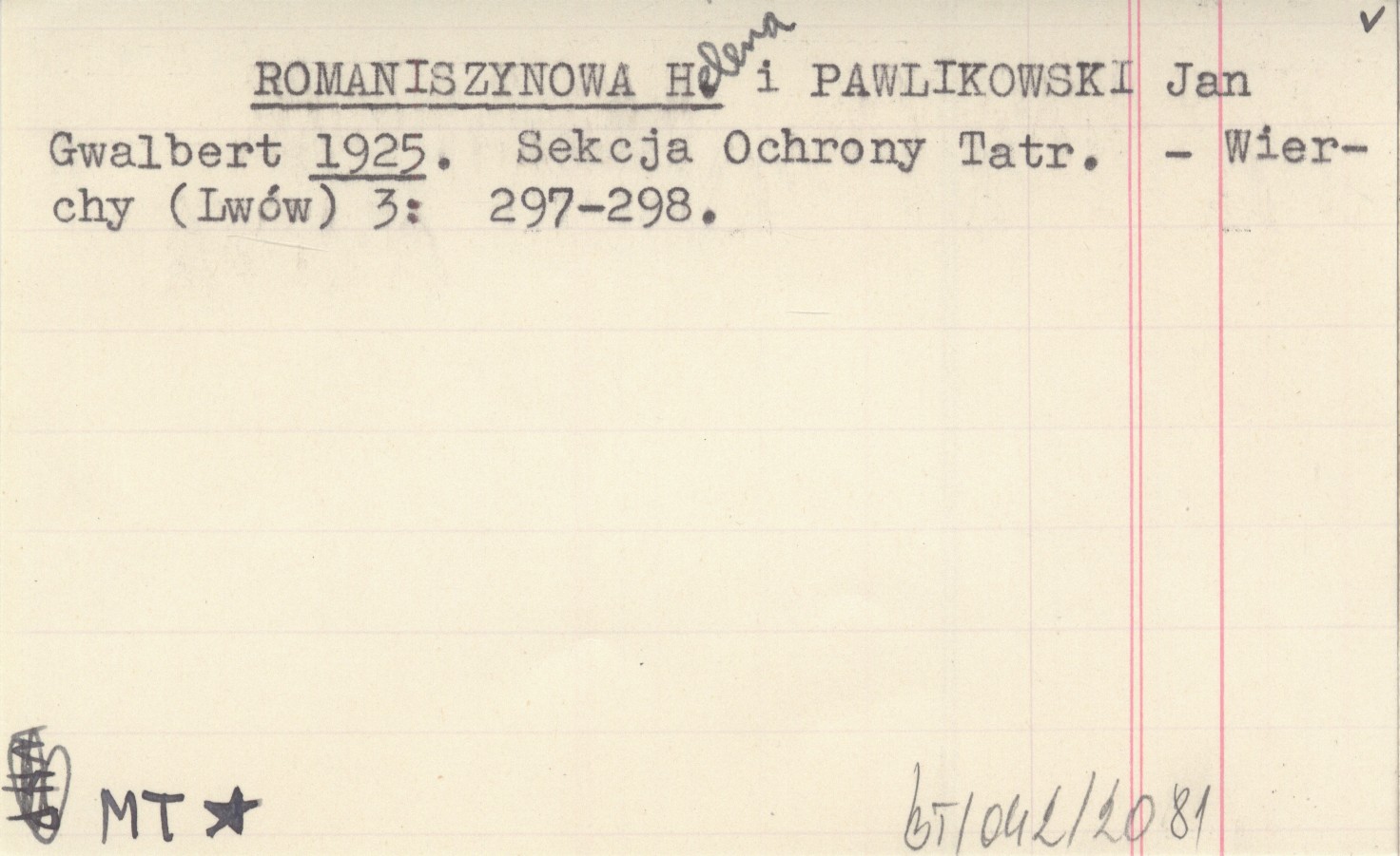 ROMANISZYNOWA Helena PAWLIKOWSKI, Jan Gwalbert. ; 1925 Sekcja Ochrony Tatr.