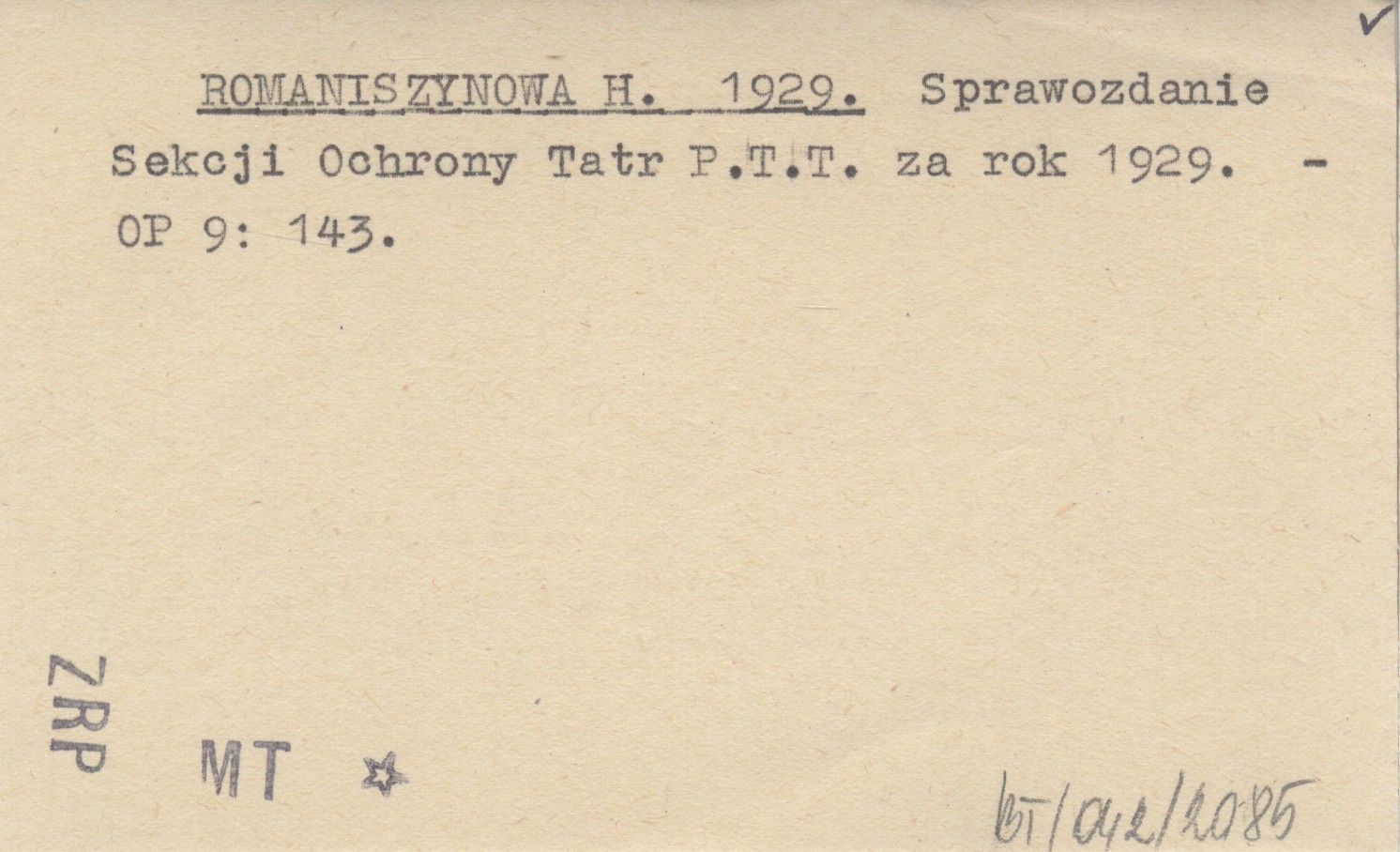 ROMANISZYNOWA H. 1929 Sprawozdanie Sekcji Ochrony Tatr P.T.T. za rok 1929.