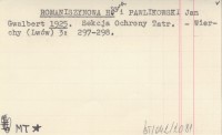 ROMANISZYNOWA H. PAWLIKOWSKI, J.Gw. ; 1930 Sprawozdanie Sekcji Ochrony Przyrody Górskiej (dawnej Sekcji Ochrony Tatr) Polskiego Towarzystwa Tatrzańskiego za rok 1930.