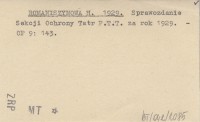 ROMANISZYNOWA Helena 1928 Sprawozdanie z działalności Sekcji Ochrony Tatr Pol. Towarzystwa Tatrzańskiego za rok 1927.