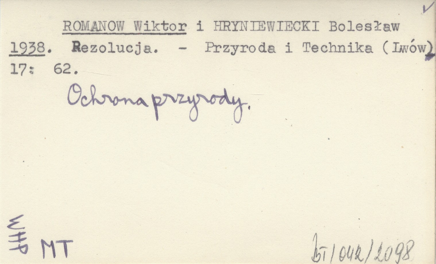 Przyroda i Technika (Lwów) , 17: 62. Ochrona przyrody.