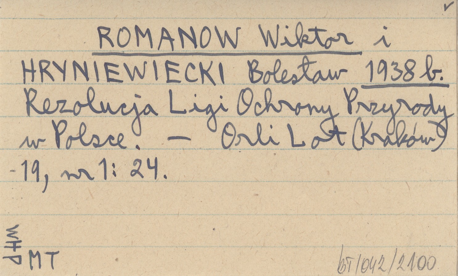 ROMANOW Wiktor HRYNIEWIECKI, Bolesław. ; 1938 b Rezolucja Ligi Ochrony Przyrody w Polsce.