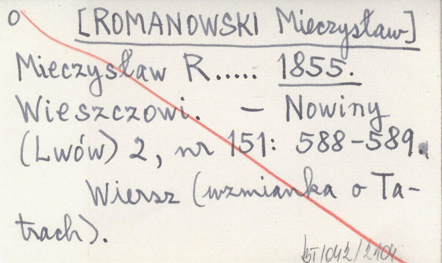 Mieczysław R..... [ROMANOWSKI Mieczysław] 1855 Wieszczowi.