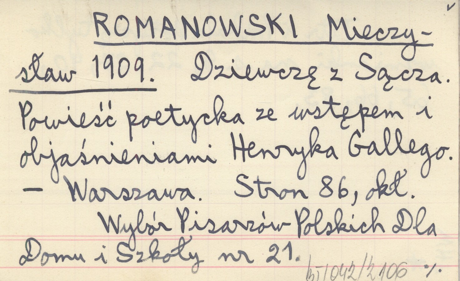 ROMANOWSKI Mieczysław 1909 Dziewczę z Sącza. Powieść poetycka ze wstępem i objaśnieniami Henryka Gallego.