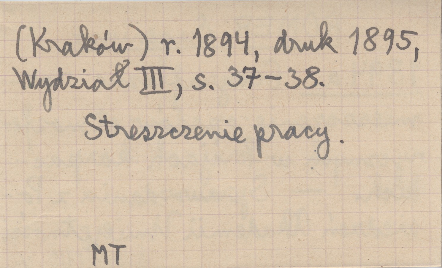 Sprawozdania z Posiedzeń Akademii Umiejętności (Kraków) , R. 1894, druk 1895, Wydz. III: 37-38. Streszczenie pracy.