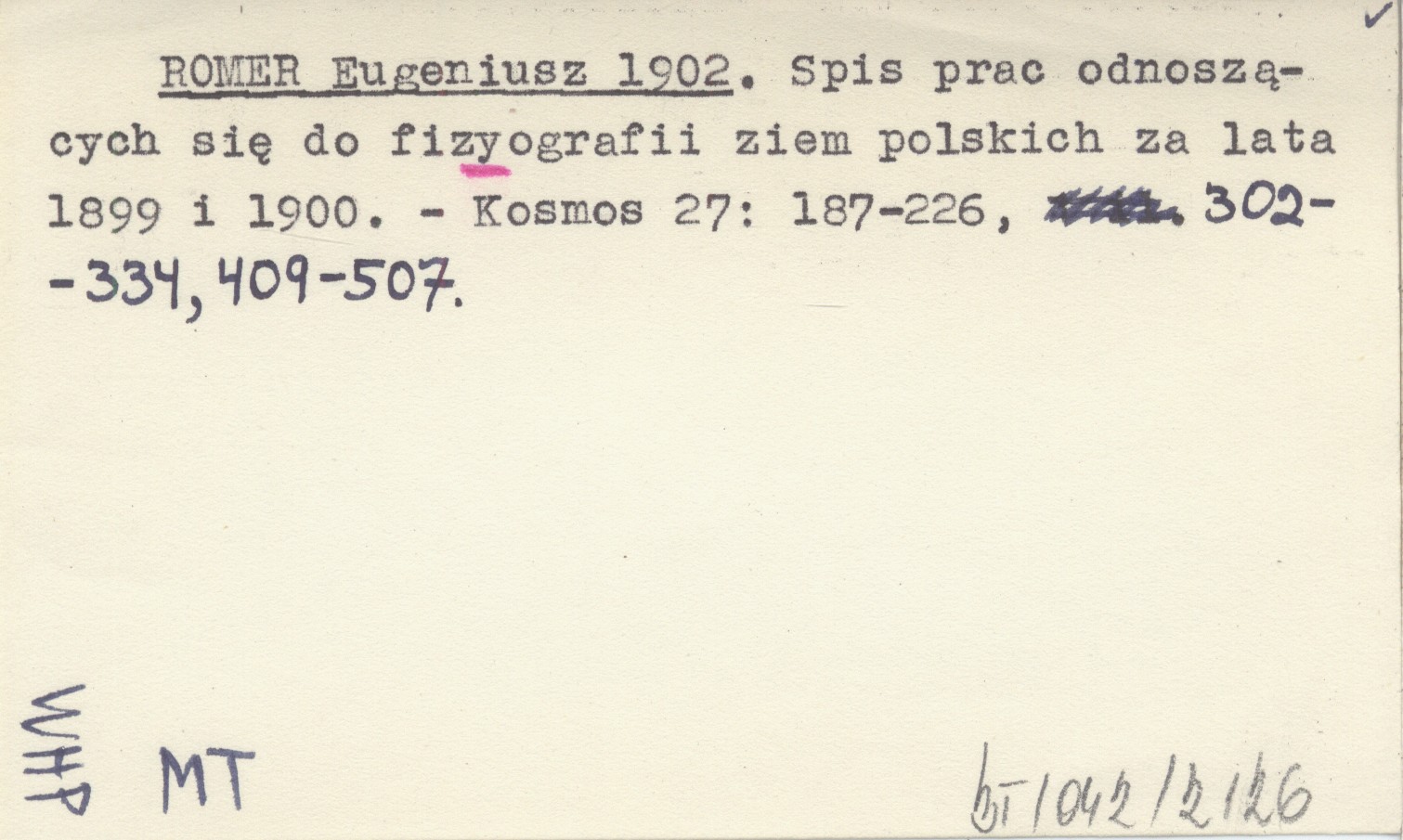 ROMER Eugeniusz 1902 Spis prac odnoszących się do fizyografii ziem polskich za lata 1899 i 1900.