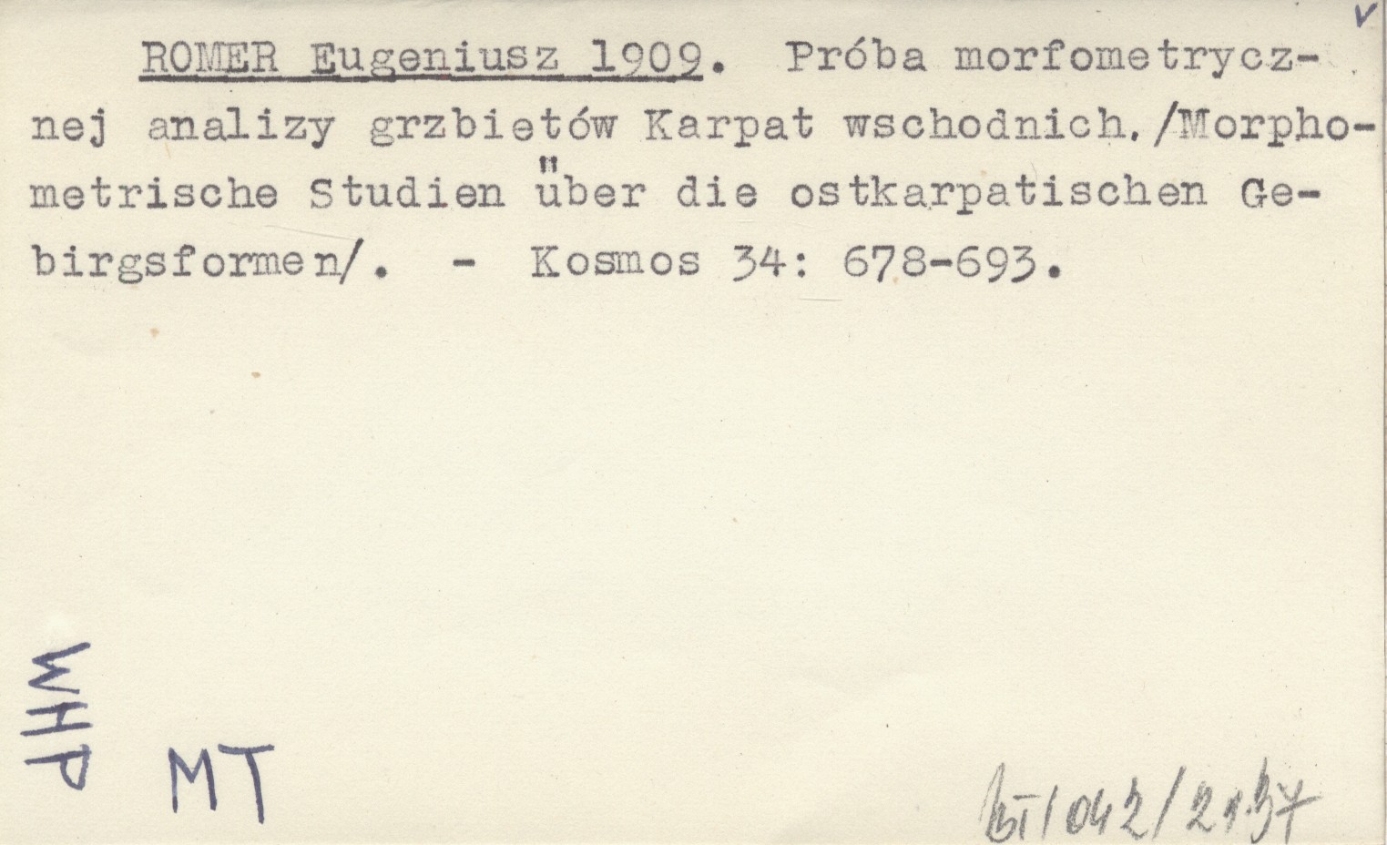 ROMER Eugeniusz 1909 Próba morfometrycznej analizy grzbietów Karpat wschodnich. (Morphometrische Studien über die ostkarpatischen Gebirgsformen).