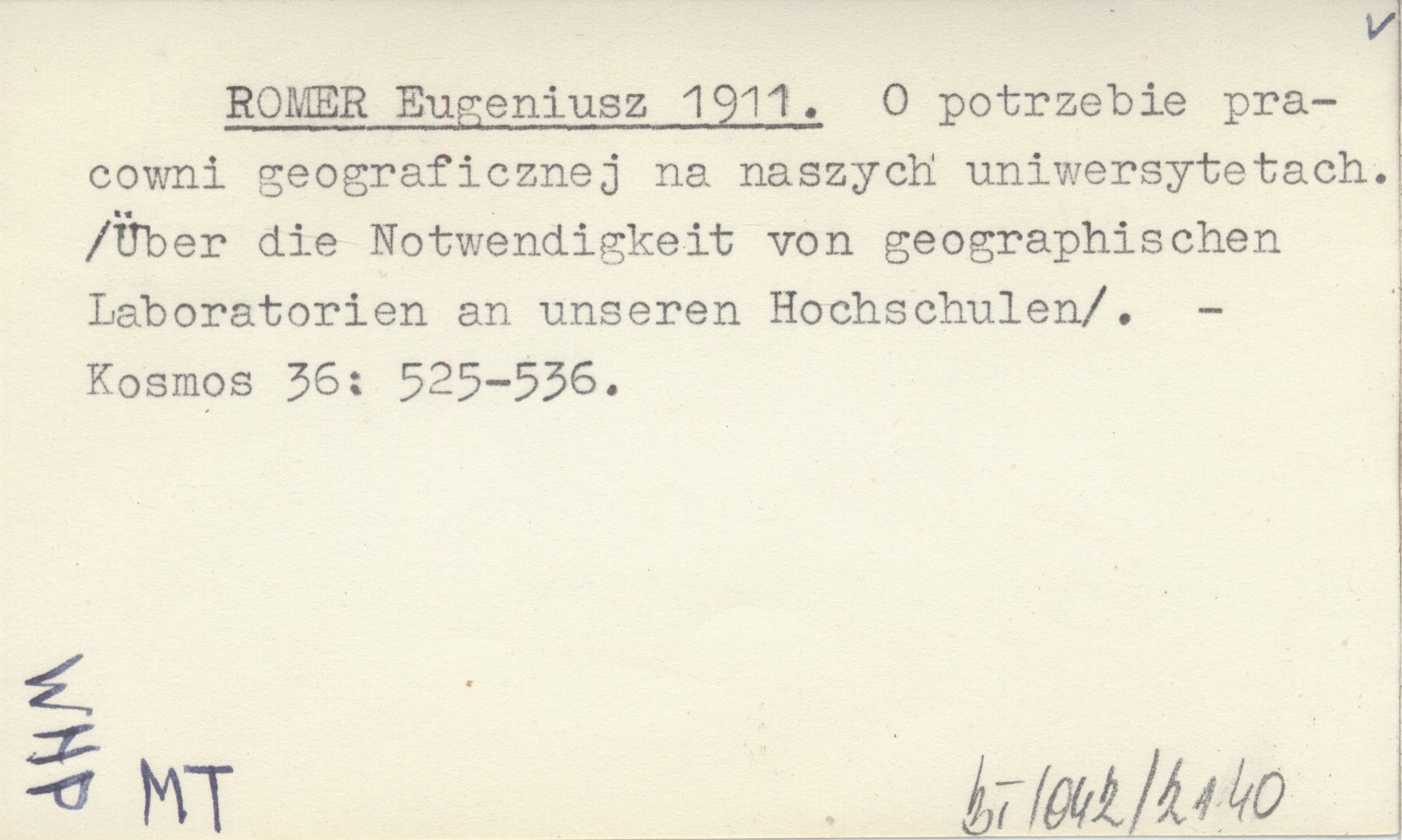 ROMER Eugeniusz 1911 O potrzebie pracowni geograficznej na naszych uniwersytetach. (Über die Notwendigkeit von geographischen Laboratorien an unseren Hochschulen).