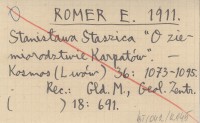 ROMER E. 1911 Stanisława Staszica "O ziemiorodztwie Karpatów".