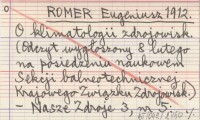 ROMER Eugeniusz 1912 O klimatologii zdrojowisk. (Odczyt wygłoszony 8 lutego na posiedzeniu naukowem Sekcji balneotechnicznej Krajowego Związku Zdrojowisk).