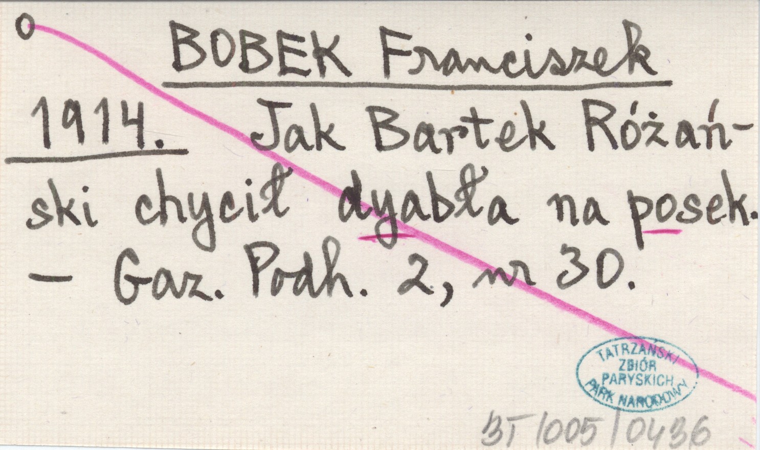 BOBEK Franciszek 1914 Jak Bartek Różański chycił dyabła na posek.