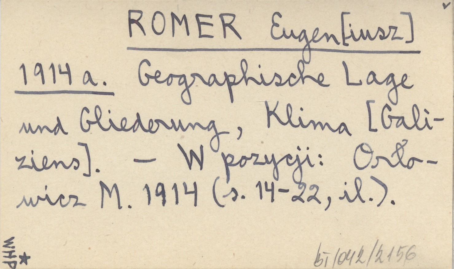 ROMER Eugen[iusz] 1914 a Geographische Lage und Gliederung, Klima [Galiziens].
