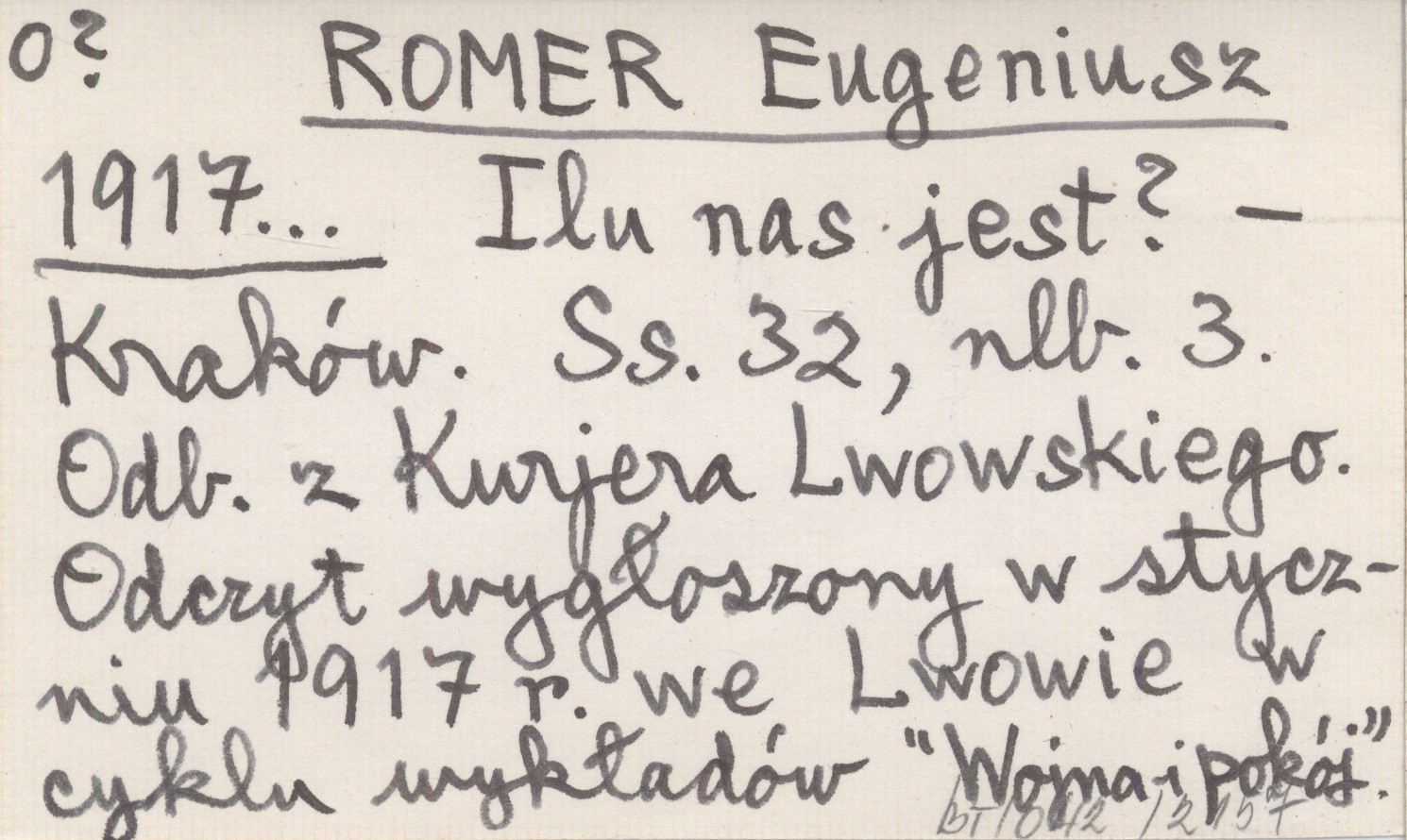 Kraków , 32 s., [3]. Odczyt wygłoszony w styczniu 1917 r. we Lwowie w cyklu wykładów "Wojna i pokój". Odb. z Kurjera Lwowskiego.