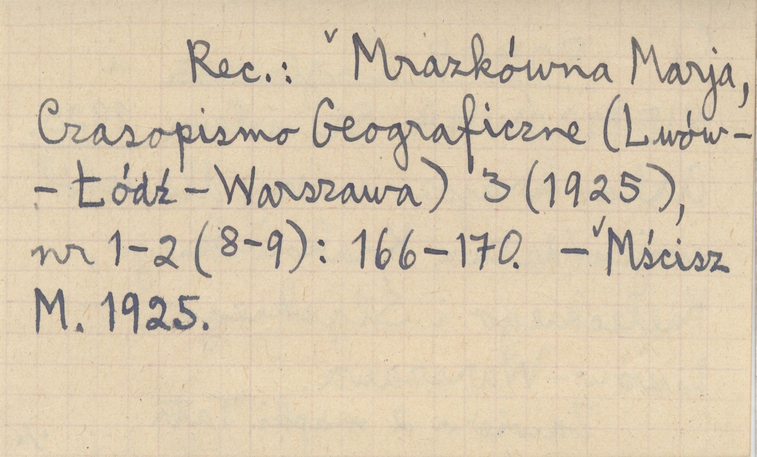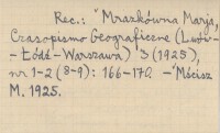 Lwów ; Warszawa ; , Zawiera 2 mapki Tatr. REC: MRAZKÓWNA Marja, Czasopismo Geograficzne (Lwów - Łódź - Warszawa) 3 (1925), nr 1-2 (8-9): 166-170 ; MŚCISZ M. 1925 ;