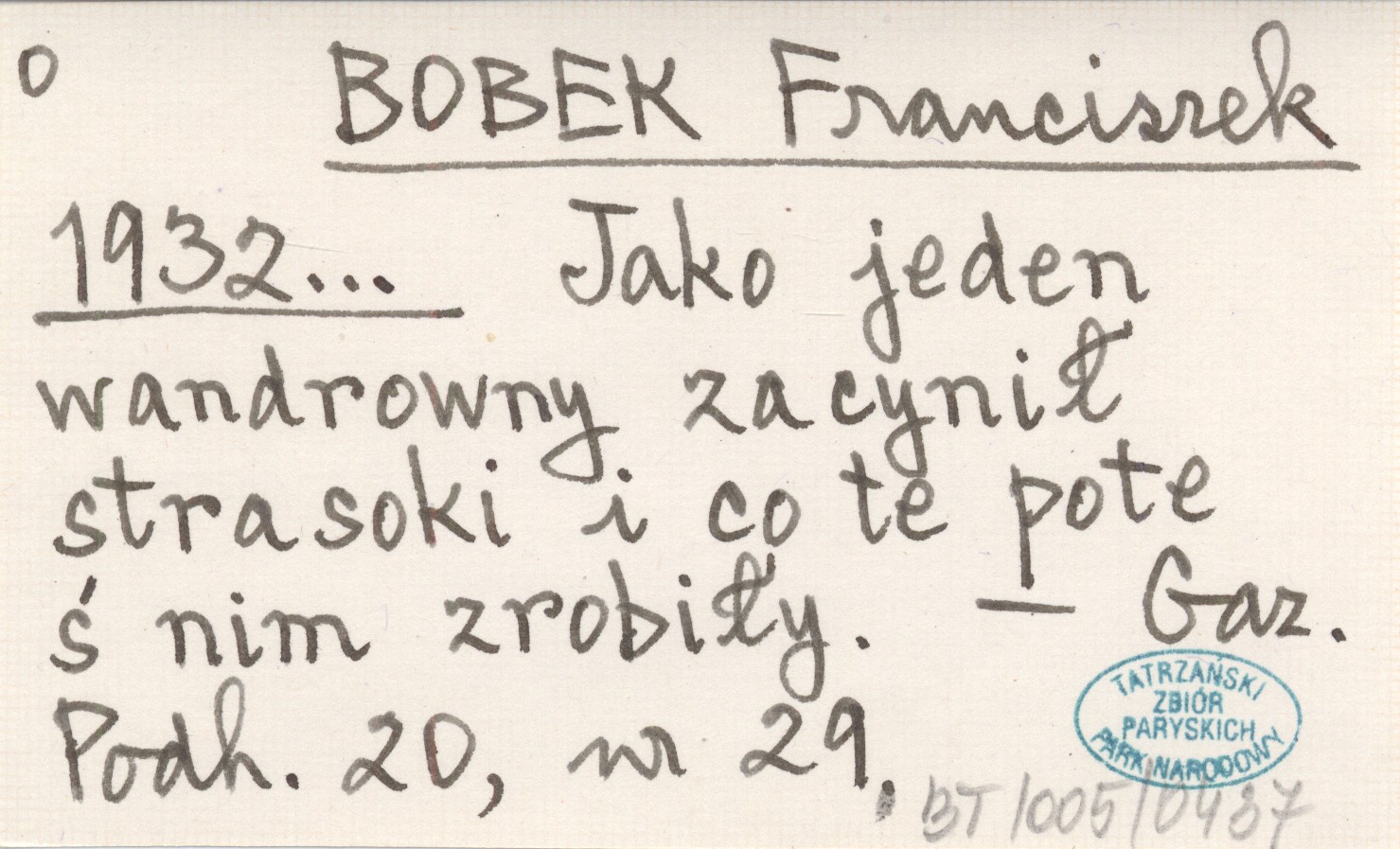 BOBEK Franciszek 1932... Jako jeden wandrowny zacynił strasoki i co te pote ś nim zrobiły.