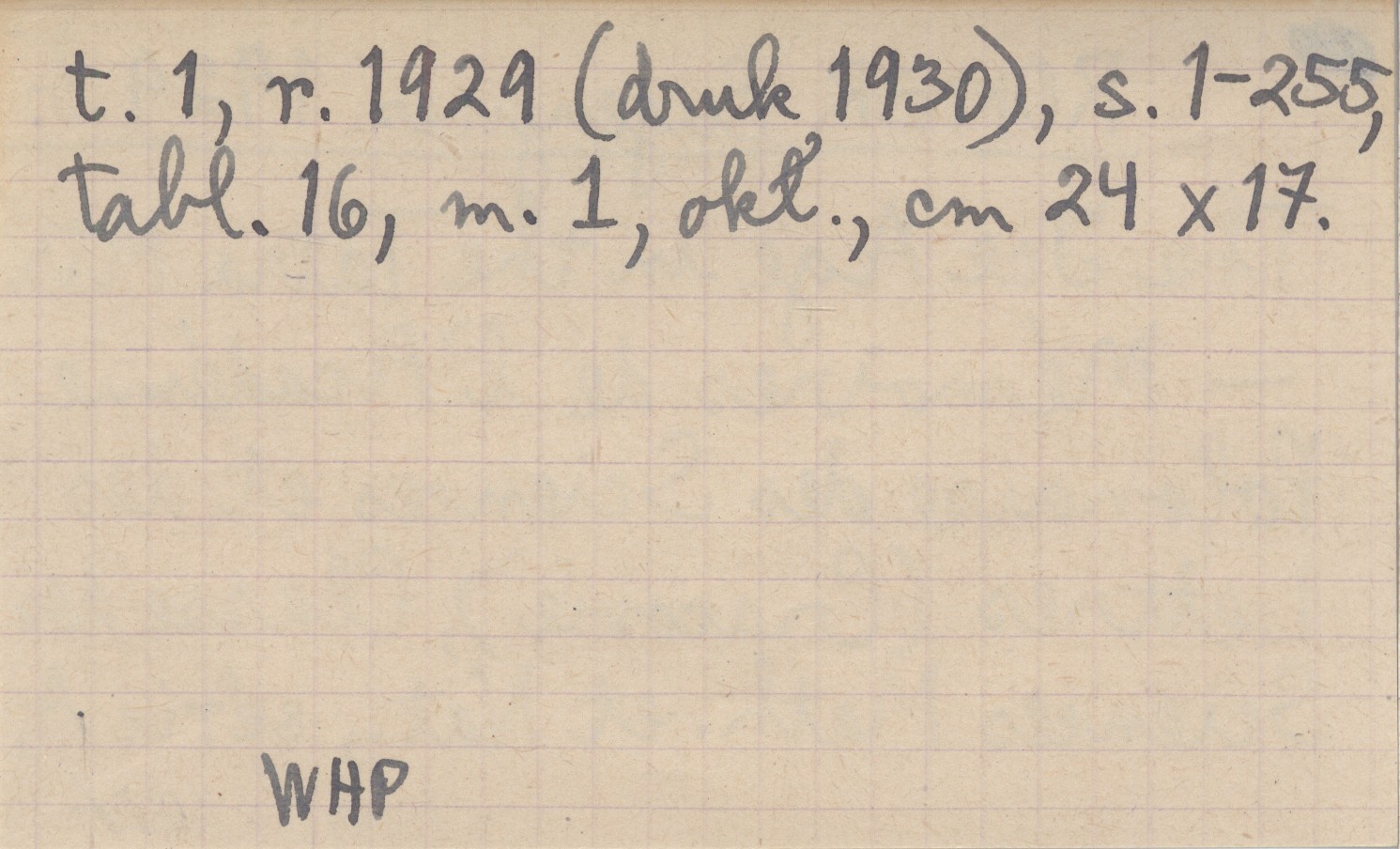 Mémoires de l'Académie Polonaise des Sciences et des Lettres, Classe des Sciences Math. et Nat. (Cracovie) , Sér. A, t. 1, r. 1929 (druk 1930): 1-255, 16 k. tabl., 1 m., okł., 24x17 cm.