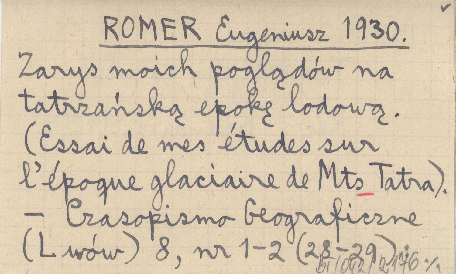 ROMER Eugeniusz 1930 Zarys moich poglądów na tatrzańską epokę lodową. (Essai de mes études sur l'époque glaciaire de Mts Tatra).