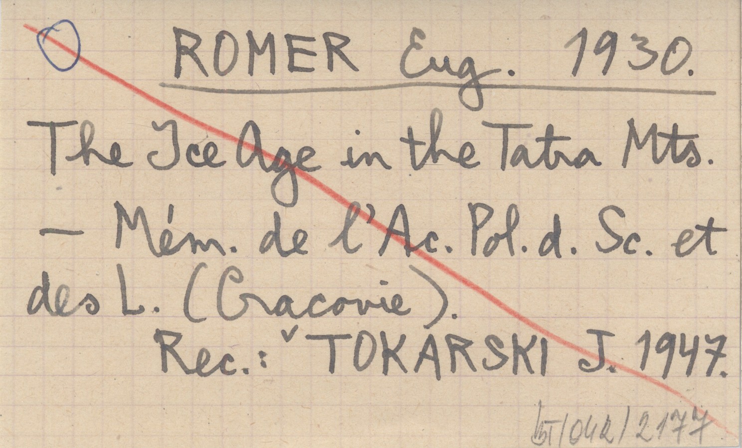 Mémoires de l'Académie Polonaise des Sciences et des Lettres (Cracovie) , REC: TOKARSKI J. 1947