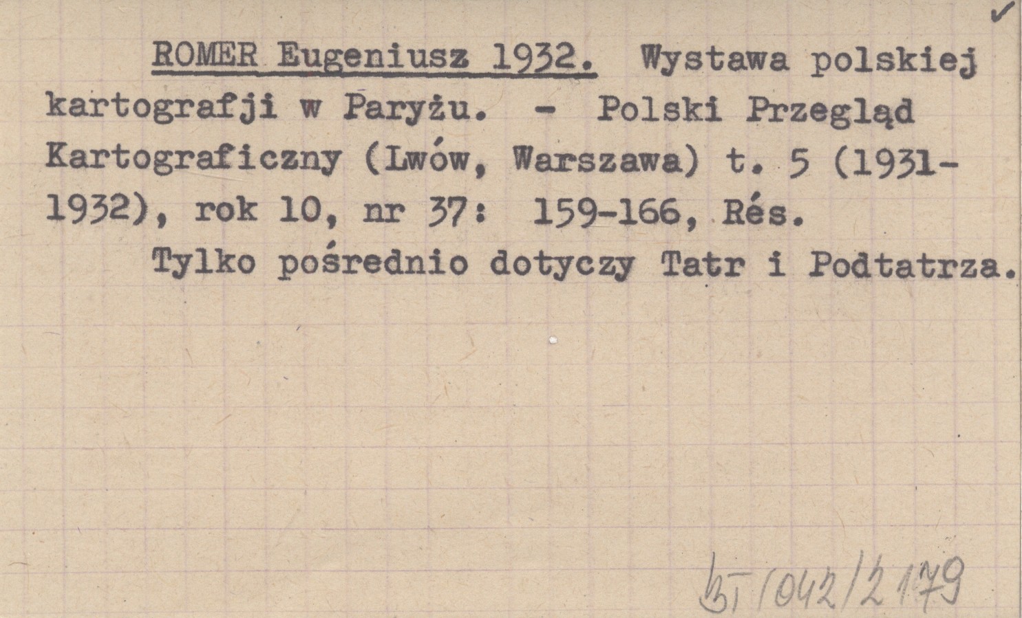 ROMER Eugeniusz 1932 Wystawa polskiej kartografji w Paryżu.